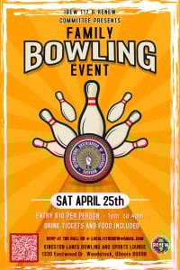 Saturday April 25th come out for an afternoon of family fun. 1 to 4 pm at Kingston Lanes Bowling and Sports Lounge,